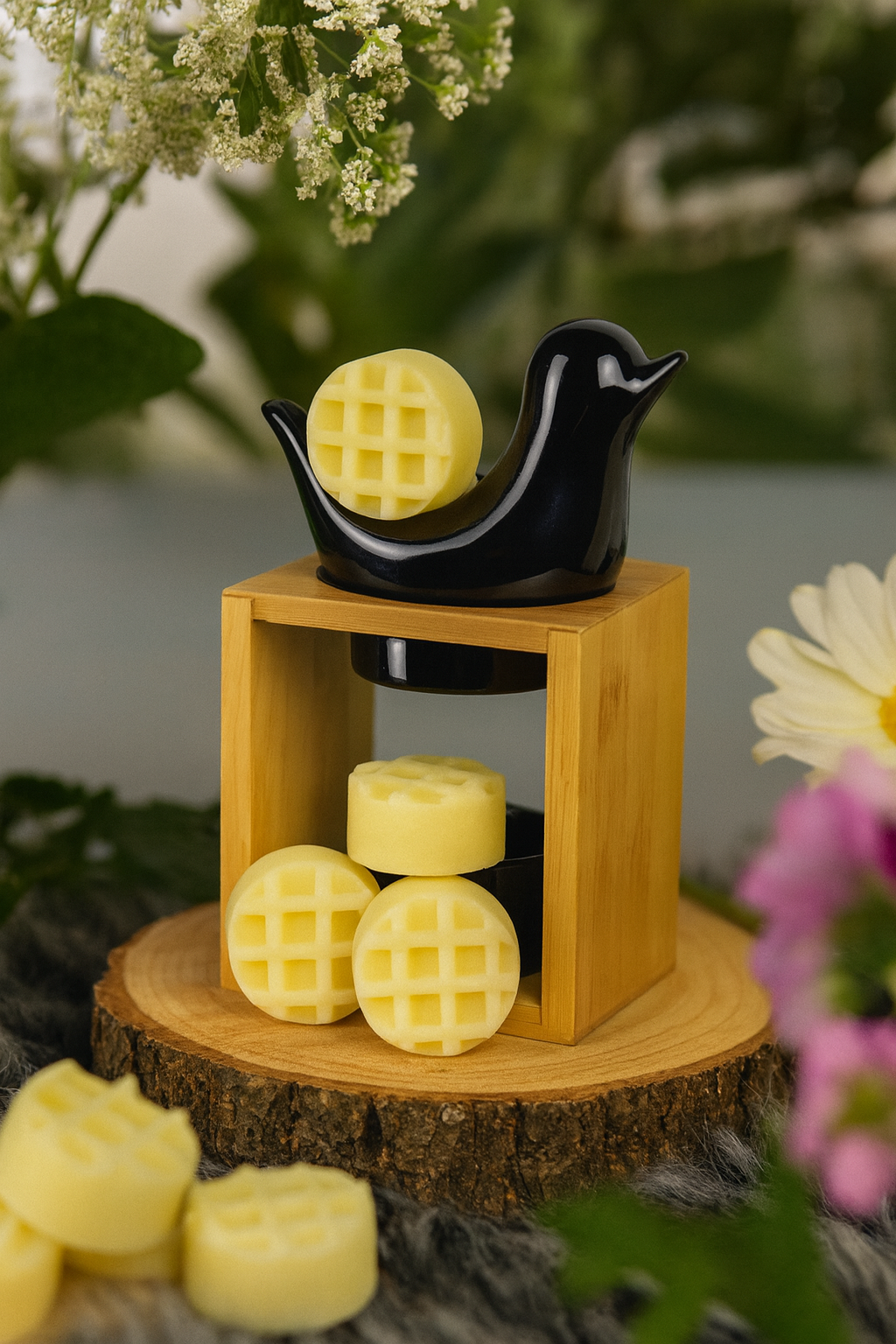 Poids: 10 grammes Diffusion de nos fondants parfumés entre 5 et 8 h dépendant du parfum. Nos fondants parfumés sont réalisés à base de cire de soja 100 % naturelle provenant de Belgique. La composition est de 89% de cire de Soja (mix) ,de 10 % de parfum de Grasse et de 1% de colorants naturels sous forme de poudre de Mica, liquide ou de pastilles de cires. Tous nos fondants sont garantis sans phthalate, sans pesticide. Ils répondent aux normes européennes IFRA50, CLP CE N°1272/2008, REACH 2020/878, non testé sur les animaux.La cire de soja est 100% végétale et vegan. Garantie sans substances CMR (Substances Cancérigènes, Mutagènes et Reprotoxiques).