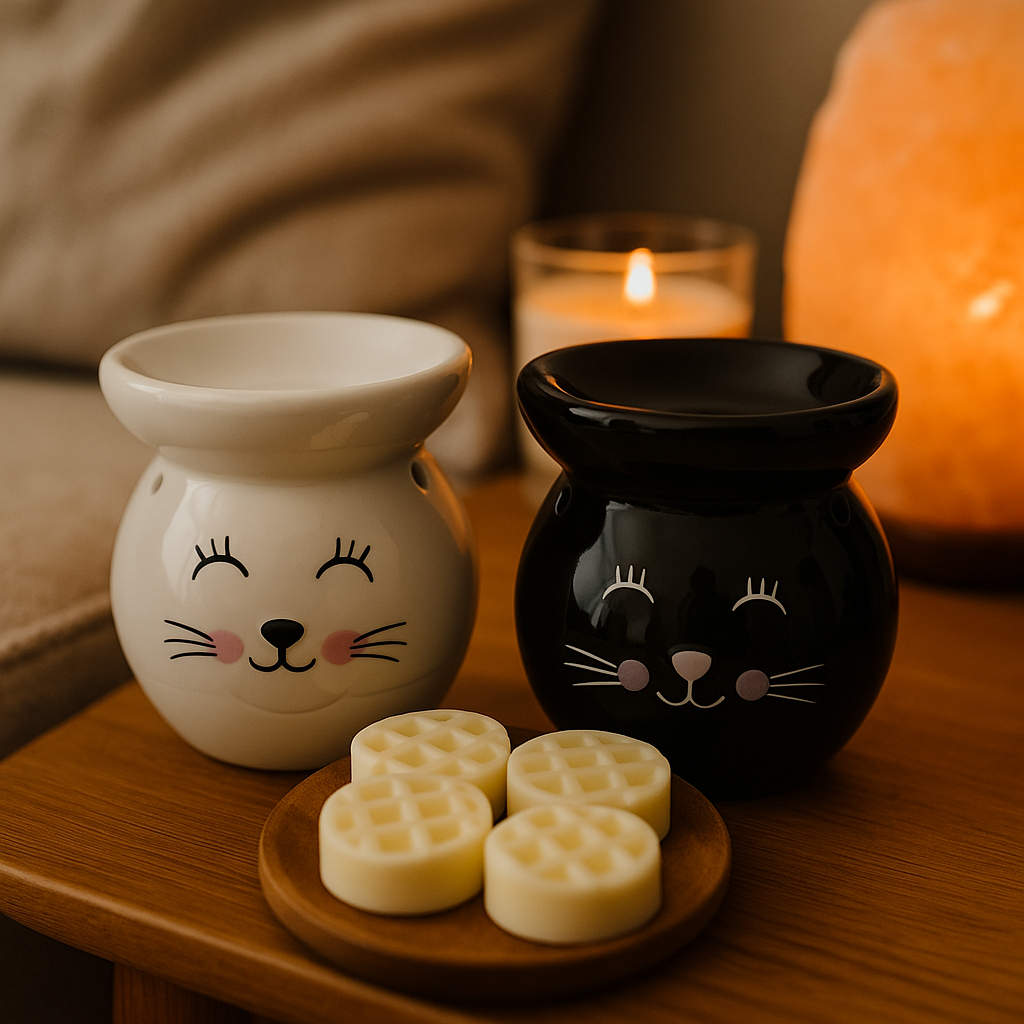 Brûleur céramique Chat. Dispo en noir ou en blanc