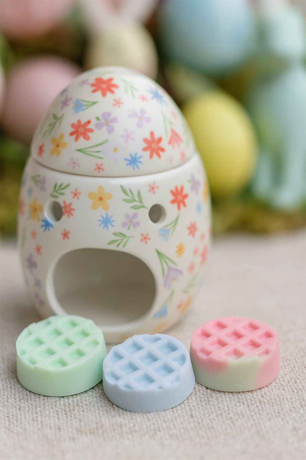 Ce magnifique brûle-parfum et chauffe-cire en céramique est orné d'une délicate floraison de fleurs aux tons pastel doux, évoquant la fraîcheur d'un jardin printanier. Doté d'une forme ovoïde unique, ce brûle-parfum est idéal pour diffuser vos fondants parfumés, fondants crémeux ou sableux préférés. Un ajout charmant à votre décoration intérieure ou un cadeau attentionné pour un être cher à Pâques. Toujours retirer le couvercle avant utilisation.